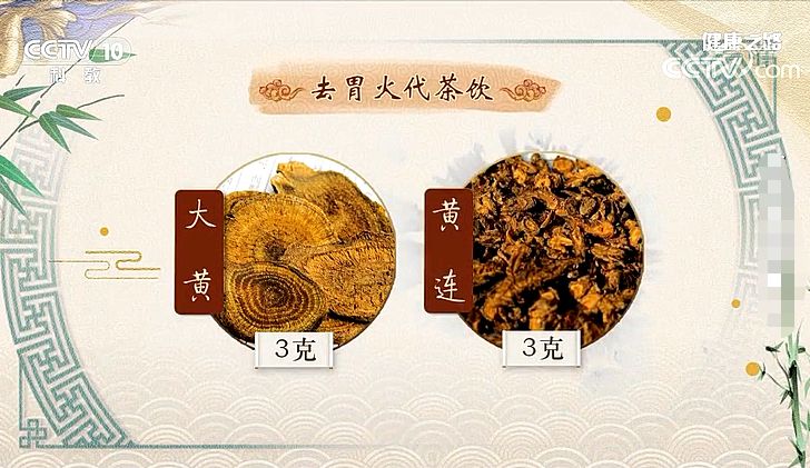 去胃火代茶飲由兩味藥組成,包括大黃3克、黃連3克。