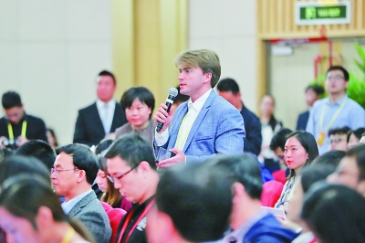 一名外國(guó)記者在中國(guó)共產(chǎn)黨第十九次全國(guó)代表大會(huì)新聞中心舉行的記者招待會(huì)上提問(wèn)。黨的十九大讓世界看到了一個(gè)更加成熟自信的政黨,看到了更加開放進(jìn)步的中國(guó)。新華社發(fā)