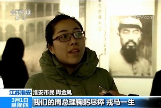 淮安市民 周金鳳:我們的周總理鞠躬盡瘁,戎馬一生。我希望更多的年輕人,在工作中艱苦奮斗,遇到困難應(yīng)該勇往直前。