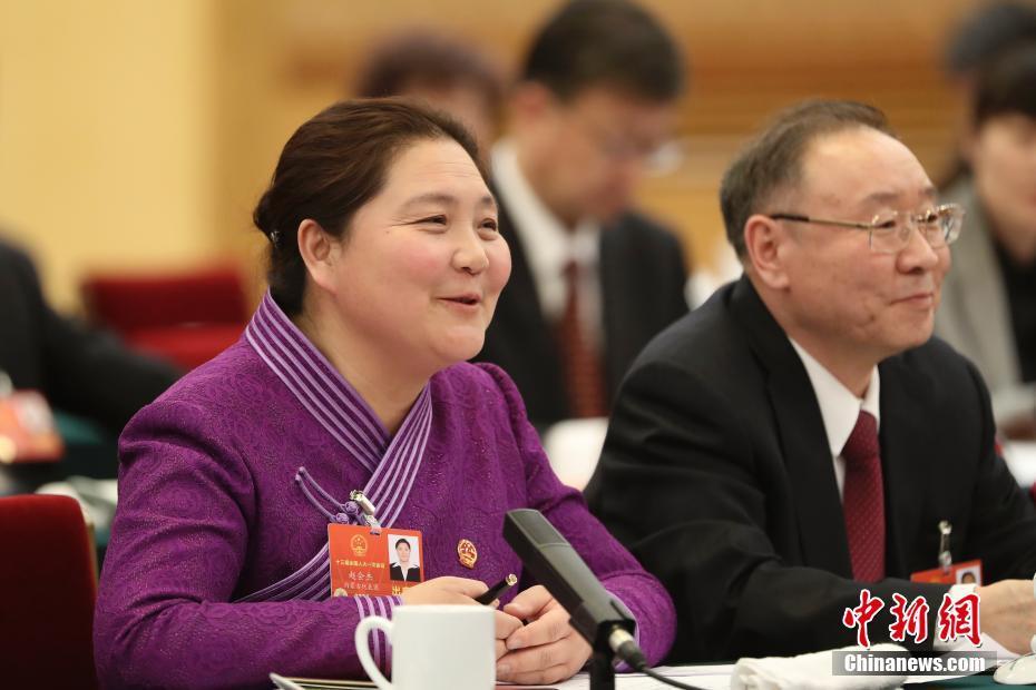 3月5日,出席十三屆全國人大一次會議的內蒙古自治區代表團在北京人民大會堂舉行全體會議,審議政府工作報告。圖為趙會杰代表在會上發言。 中新社記者 盛佳鵬 攝