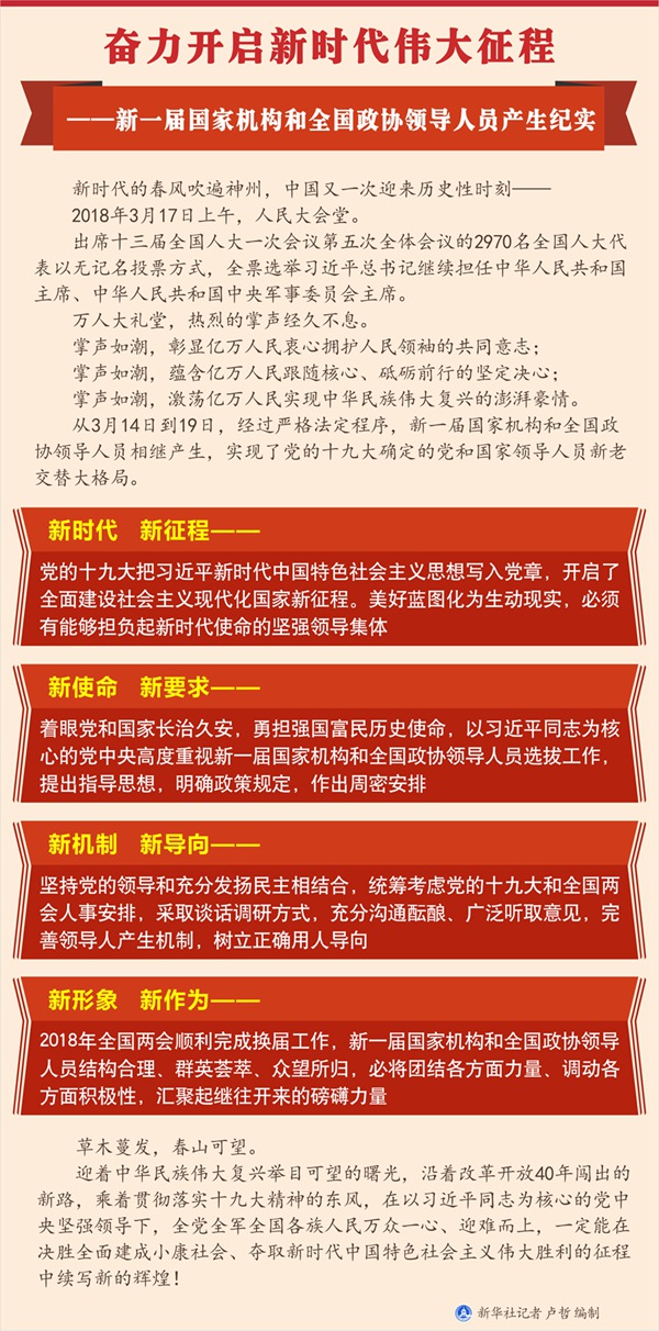 圖表:奮力開啟新時代偉大征程——新一屆國家機構和全國政協領導人員產生紀實 新華社記者 盧哲編制