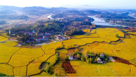 安徽省舒城縣棠樹鄉(xiāng)豐收的稻田、縱橫交錯的道路、錯落有致的村舍,構成一幅迷人的鄉(xiāng)村田園美景畫。近年來,當?shù)胤e極發(fā)展生態(tài)旅游業(yè),興建鄉(xiāng)村旅游通道,游客方便、村民增收,取得顯著成效。(圖片來源:新華網(wǎng))