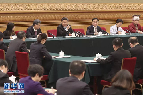 2018年3月7日,中共中央總書記、國家主席、中央軍委主席習(xí)近平參加十三屆全國人大一次會(huì)議廣東代表團(tuán)的審議。 新華社發(fā)(盛佳鵬 攝)