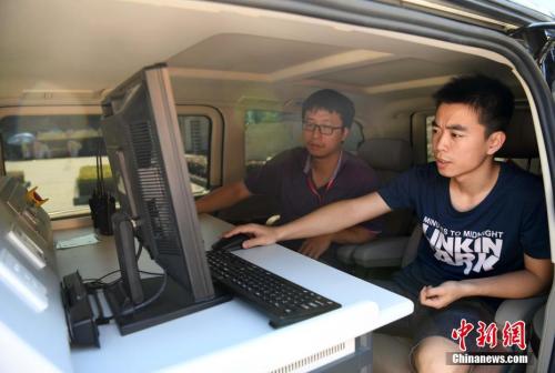 資料圖:2017年高考,技術人員在福州一考場開展無線電信號監測。張斌 攝