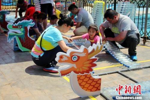 資料圖:一位小朋友正在和爸爸媽媽制作龍舟。盧文偉 攝