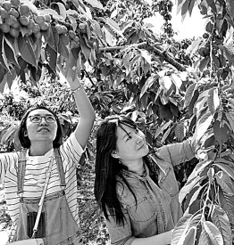 游客在秦皇島市山海關區石河鎮毛家溝村的果園采摘櫻桃。新華社發
