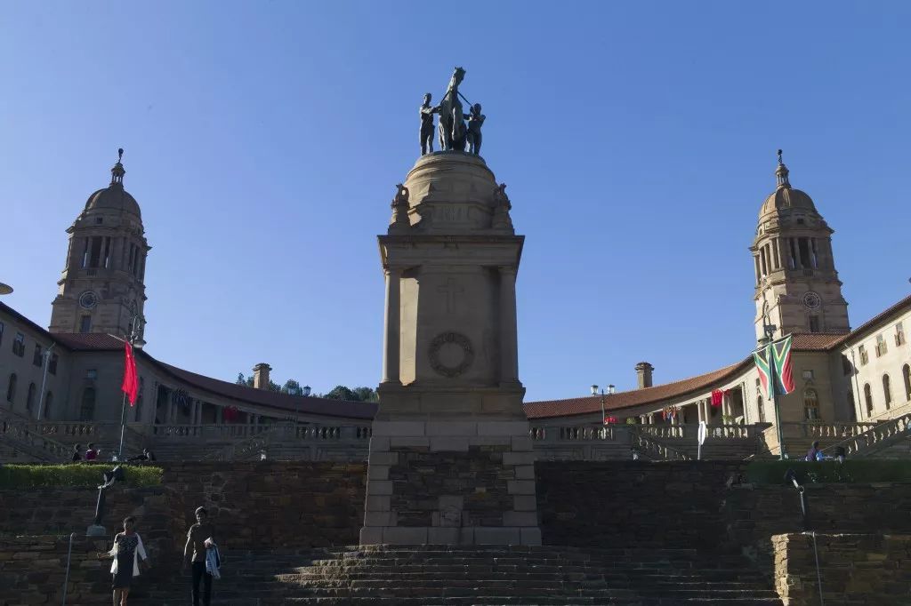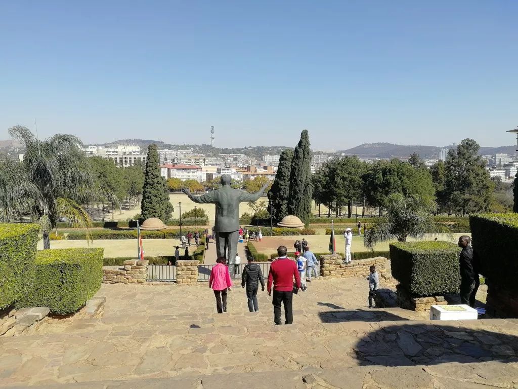 站在聯邦大廈前,可以從山坡上俯瞰比勒陀利亞全城。對面山坡上方形建筑,就是南非著名的先民紀念館(Voortrekker Monument)。