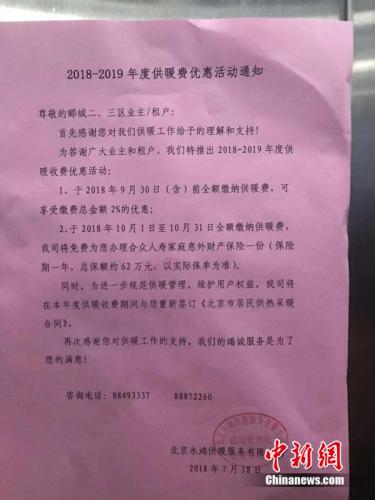 某小區內張貼的收取供暖費通知。中新網孫悅 攝