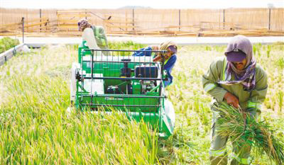 2018年6月底,工人正在收割海水稻。資料圖片