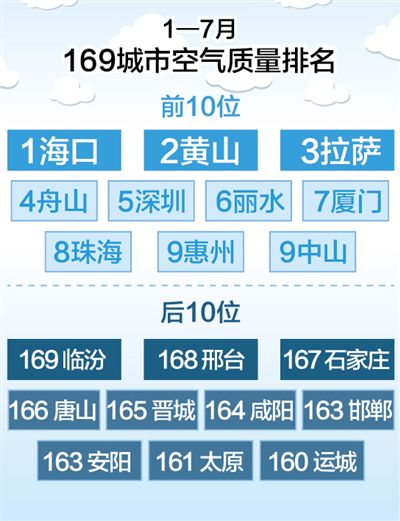 原標(biāo)題:前7月全國城市空氣優(yōu)良天數(shù)比78.8%
