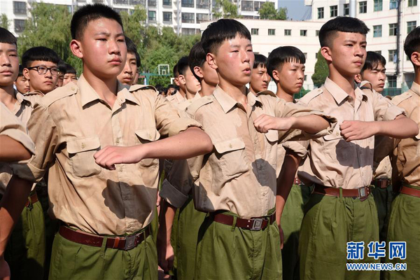 8月23日,河北省涉縣第二中學的高一新生在參加軍訓。新華社發(郝群英 攝)