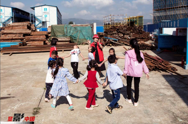 每年暑假,留守兒童來到父母工作的工地,享受團聚時光。新華網 鮑禹 攝