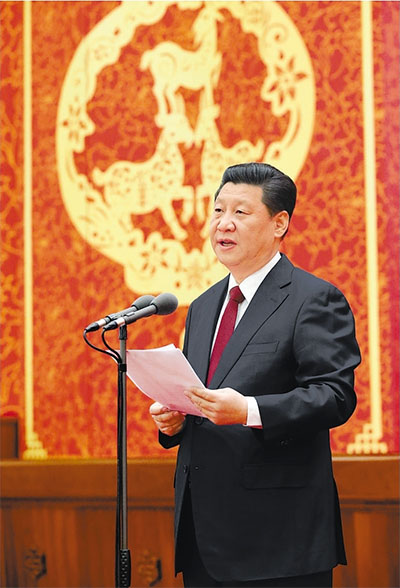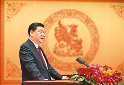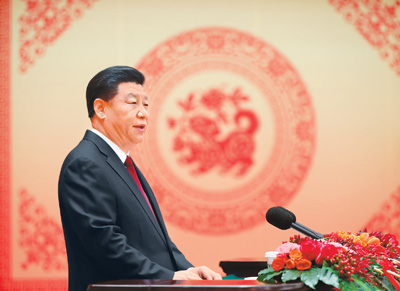 2015年2月17日,中共中央、國務院在北京人民大會堂舉行2015年春節團拜會。中共中央總書記、國家主席、中央軍委主席習近平發表重要講話。新華社記者 姚大偉攝