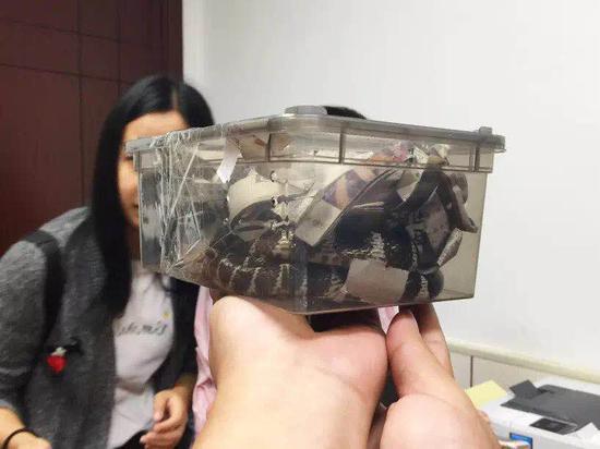 咬傷小李的那條銀環蛇被裝在塑料盒內。 本文圖片均為杭州市中醫院提供