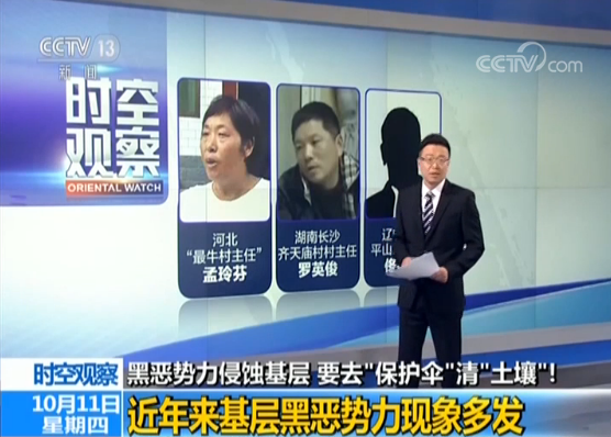 河北“最牛村主任”夢玲芬,自2012年以來,組成惡勢力團伙,要求所有村民結婚必須“上供”,曾有一村民未照辦,結婚當天竟收到了送到門口的花圈。長沙齊天廟村村主任羅英俊,濫用職權,挪用扶貧資金,巧取豪奪企業費用。還有本溪平山區房身村一手遮天的村長佟錦彪等等。