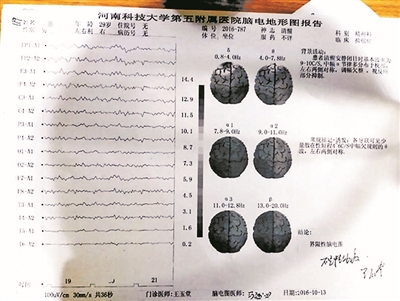 劉剛:剛?cè)朐旱臅r候做過一個檢查,顯示“未見異常”,之后8月19日的檢查又說“腦地形圖異常”。