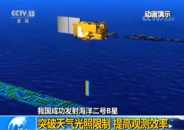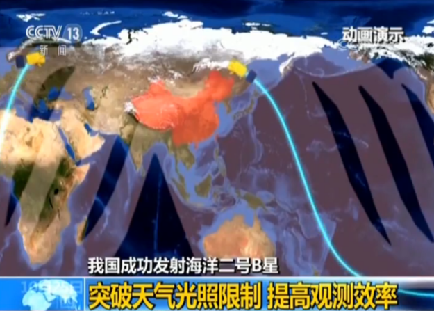 航天科技集團五院海洋二號衛星顧問 馬世俊:三星同時在軌,而且在不同的軌道面上,這樣我們可以及時獲取海洋信息,使得我們爭取24小時準確進行預報整個區域的這塊的情況,監視整個它的動態情況。