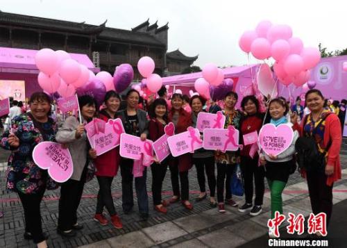 資料圖:重慶市民手舉“關愛女性健康”等字樣牌子,呼吁大家關愛女性?!≈芤?攝