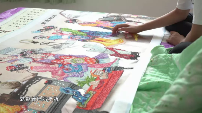 粘鉆石畫(huà),時(shí)間長(zhǎng)了,后背疼,肩膀也疼,眼睛也粘近視了,但為了媽媽,雨杉都極力克服,她甚至不舍得為自己配一副加了度數(shù)的新眼鏡。