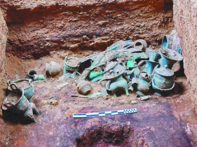 通過對(duì)115座墓葬的考古發(fā)掘,發(fā)現(xiàn)大多與兩周時(shí)期周系墓葬的特征保持了明顯的一致性。大墓和部分中型墓雖遭嚴(yán)重盜掘,但仍發(fā)掘清理出大量青銅器,以及金器、玉器、鐵器、陶器和漆木器等珍貴文物。最惹眼的是,大中型墓中,多隨葬有精美的漆木器,如鐘磬架子、幾案、豆等。