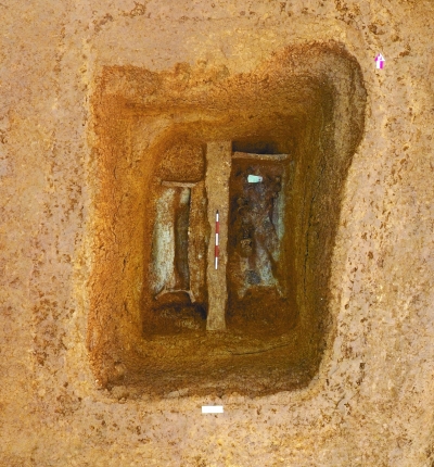 ①城河遺址王家塝墓地發(fā)現(xiàn)的“同穴二室”墓。資料圖片