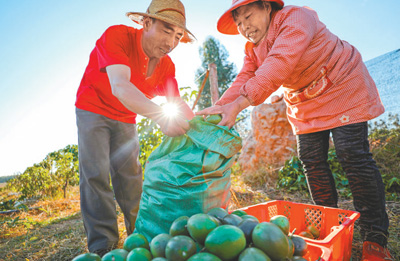 朱曉文和妻子在果園勞作。王 勇攝(人民視覺)