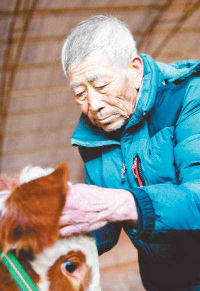 劉洪喜在給牛“體檢”,仔細(xì)檢查毛發(fā)、耳朵、眼睛。 本報(bào)記者 李家鼎攝