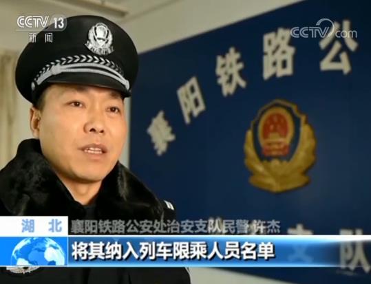 襄陽鐵路公安處治安支隊民警 許杰:目前我們已經將這名男子刑事拘留,下一步將向鐵路有關部門通報,將其納入列車限乘人員名單。