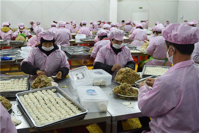 在福建省三明市沙縣,一家食品公司的工作人員在制作蒸餃(1月12日攝)。新華社記者 賀燦鈴 攝