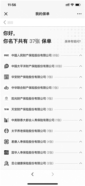 李濱和小潔家屬認為,中國保險行業協會旗下的保險查詢平臺可以為投保者提供保單集中查詢和驗證的服務。“我還用自己的信息查了一下,可以查出37張保單,但是這個平臺只能本人查詢,因為要進行人臉識別,但是這體現出中國保險行業協會是可以獲取到保險當事人的承保信息的。”