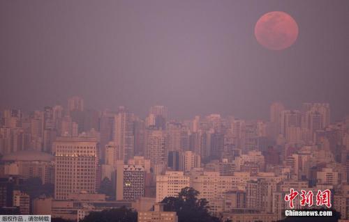 資料圖:巴西圣保羅,天空中懸掛著巨大的“超級月亮”。