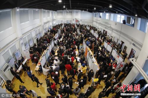 春節(jié)過后,天津,泰達(dá)人才市場舉行首場大型招聘會(huì)。圖片來源:視覺中國