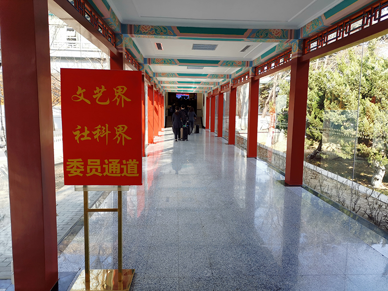 △委員前往會場的通道。(央視記者張曉鵬拍攝)