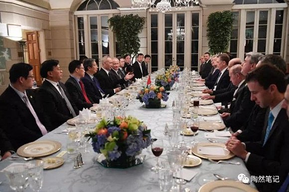 談判結束后美國白宮發布的5張關于中美經貿磋商的照片里,有三張就是關于歡迎宴會的。