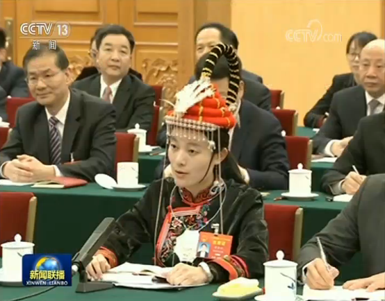第一個(gè)發(fā)言的是福建團(tuán)最年輕的代表——33歲的畬族代表雷金玉,看到雷金玉的畬族服裝,總書記對(duì)她說,你這是升級(jí)版的畬族頭飾。