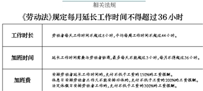 中國財政科學研究院應用經濟學博士后盤和林對北青報記者表示,按照勞動法相關規定,在保障勞動者身體健康的條件下,延長工作時間每日不得超過3小時,每月不得超過36小時。在員工存在超時加班的情況下,即使是員工樂意自愿的,企業仍然會存在一定的用工風險,包括勞動監察檢查的風險、被通報批評和被罰款的風險、被舉報的風險及仲裁和訴訟的風險。本組文/本報記者 溫婧 圖片源自網絡