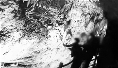 一名男子用手中的石頭敲斷鐘乳石視頻截圖
