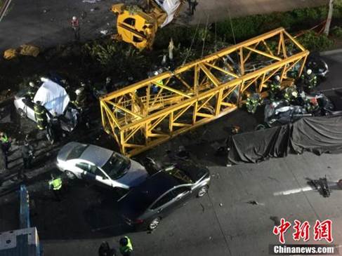 美國西雅圖市中心一架起重機(jī)倒塌 已致4死3傷