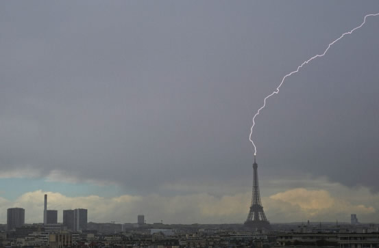 巴黎埃菲爾鐵塔被閃電擊中 攝影師拍下震撼一幕