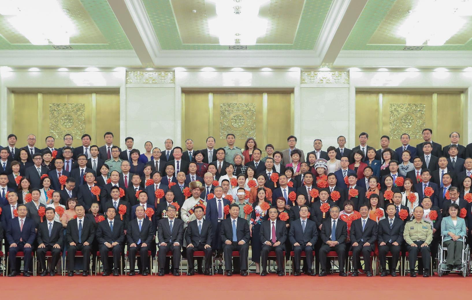 上午11時,習近平等來到人民大會堂北大廳,全場響起熱烈掌聲。習近平等同代表們熱情握手,關切地詢問他們的工作生活情況。習近平等同大家合影留念。