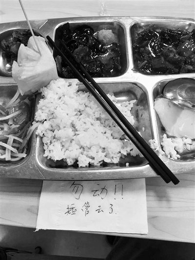 之所以要選擇這樣的方式,他解釋,因為當時餐廳里沒有其他同科同事,而且麻煩他人一直守著自己的餐盤也不可能,所以就希望留下紙條提示食堂工作人員不要收他的餐盤。而在去年,欒遠航就曾遇到過一次臨時離開,餐盤被收走的尷尬。“后來插管很順利,差不多20分鐘我就回來了,餐盤也沒被收走。” 欒遠航說。