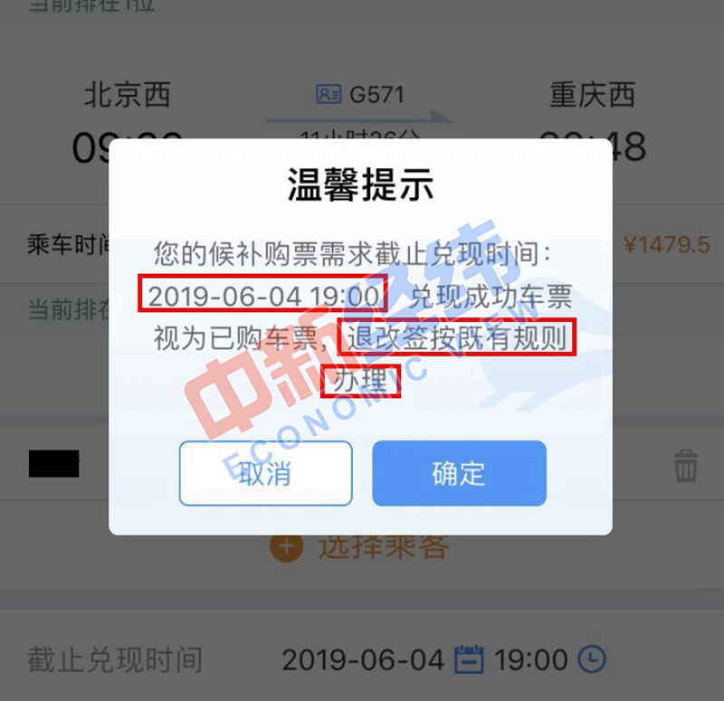 4、提交候補訂單。此時會出現購票提示頁面,可供大家確認截止兌現時間。