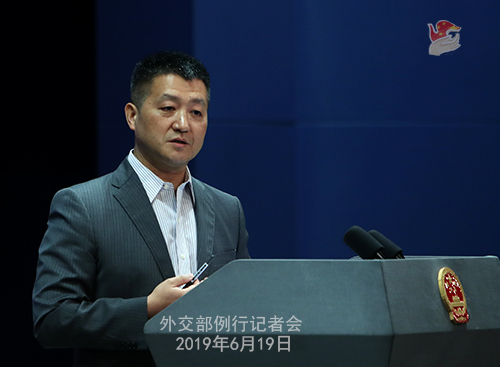 ---6月19日,外交部發言人陸慷主持例行記者會。