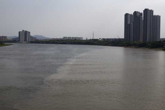 ●近日,吉林省吉林市松花江出現了一半混濁一半清澈的景象。