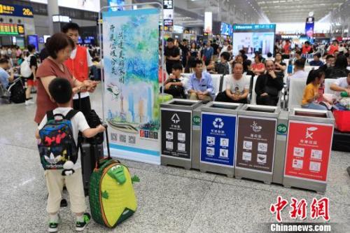 資料圖:鐵路上海虹橋站候車室內宣傳垃圾分類知識。 殷立勤 攝