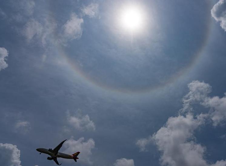 10日,貴陽市上空出現日暈景觀。據了解,日暈也叫圓虹,一種大氣光學現象。