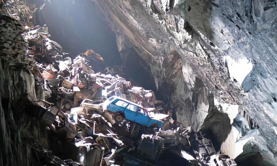 震撼!英國探險家加雷斯 歐文(Gareth Owen)在威爾士山脈的一處神秘洞穴發現了數百輛舊車殘骸,并將這一神秘畫面拍攝了下來。