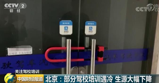記者走訪了幾家駕校報名點發現,一些駕校報名點已經緊鎖著大門,只留下了聯絡號碼,甚至有的報名點也只剩下了一個駕培的招牌。