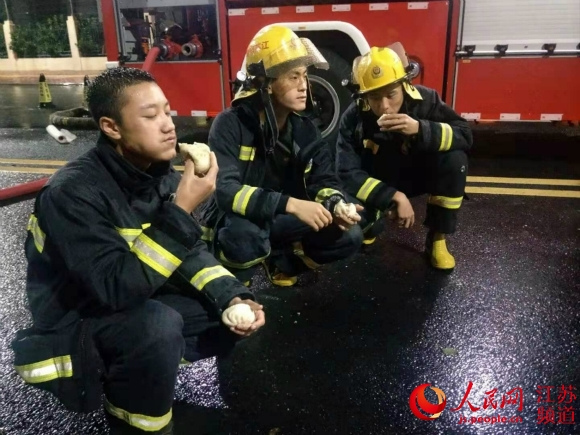 ●8月10日,19歲的消防員吉侯牛培1分鐘啃12個包子,“如果不快點吃要耽誤時間”。吉侯牛培稱,其連續抗澇4小時,吃了戰友送來的熱包子,感到很暖心。