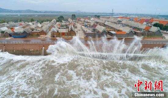 ●11日,受臺風“利奇馬”影響,山東榮成沿海出現驚濤拍岸景象。在山東榮成寧津街道附近海域,波浪向岸邊滾滾涌來,掀起巨浪。